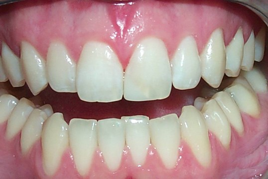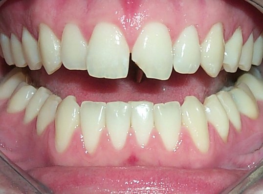 Patient broke anterior tooth by biting down on his tongue piercing. We restored using composite bonding.